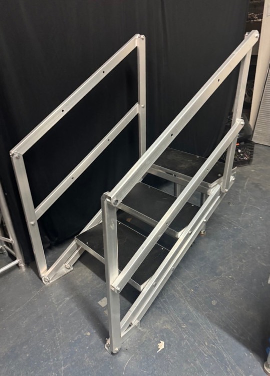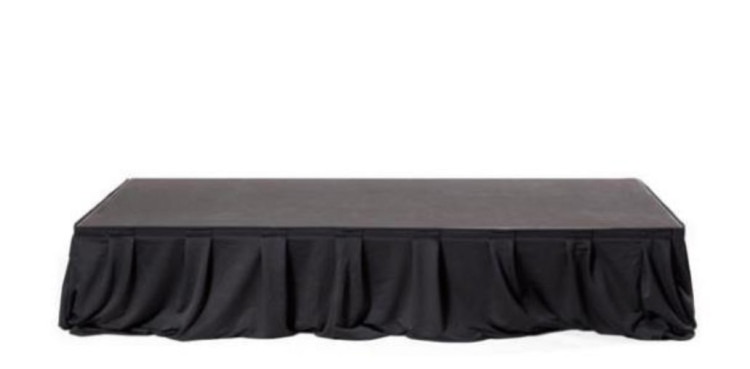 Stairs with handrails8x20 ft Black Stage:Stairs with handrails1Dropdown03261401_32618550000Sturdy stairs with handrails — a safe, reliable way to access raised platforms, stages, or inflatables. These portable steps are designed for temporary event use, offering a solid walking surface and supportive handrails on both sides to help guests climb and descend with confidence. Ideal for concerts, weddings, trade shows, backyard parties, or any rental that requires easy, accessible entry to elevated areas. Built for frequent setup and takedown, they provide stability, clear footing, and extra peace of mind for children, seniors, and anyone who prefers added support. Simple to position and compatible with most event layouts, these stairs make access safer and smoother without changing the look or flow of your space. 24’ Black skirt with velcro8x20 ft Black Stage:24’ Black skirt with velcro1Dropdown03261401_32614050000A 24-foot black skirt with Velcro — a long, durable fabric panel designed to neatly cover the lower edge of a rental item or structure. Its deep black color creates a clean, professional appearance and helps hide equipment, cords, or support legs from view. The Velcro fastening allows quick, secure attachment and easy removal for setup, transport, or cleaning. Ideal for finishing the look of stages, platforms, tents, tables, or booths, it provides a streamlined, finished presentation while remaining functional and simple to maintain.
